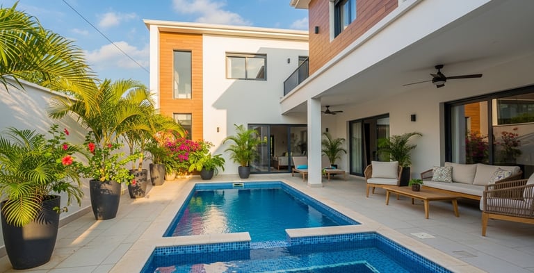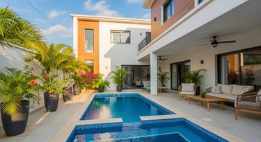un véritable havre de paix de 110 m² niché sur un terrain de 350 m². Cette résidence d'exception se compose de quatre chambres, dont deux suites parentales, d'un vaste séjour baigné de lumière et d'une cuisine moderne entièrement équipée. Entièrement climatisée et agrémentée d'une piscine privée, elle offre le cadre de vie idéal pour ceux qui recherchent confort et sérénité.